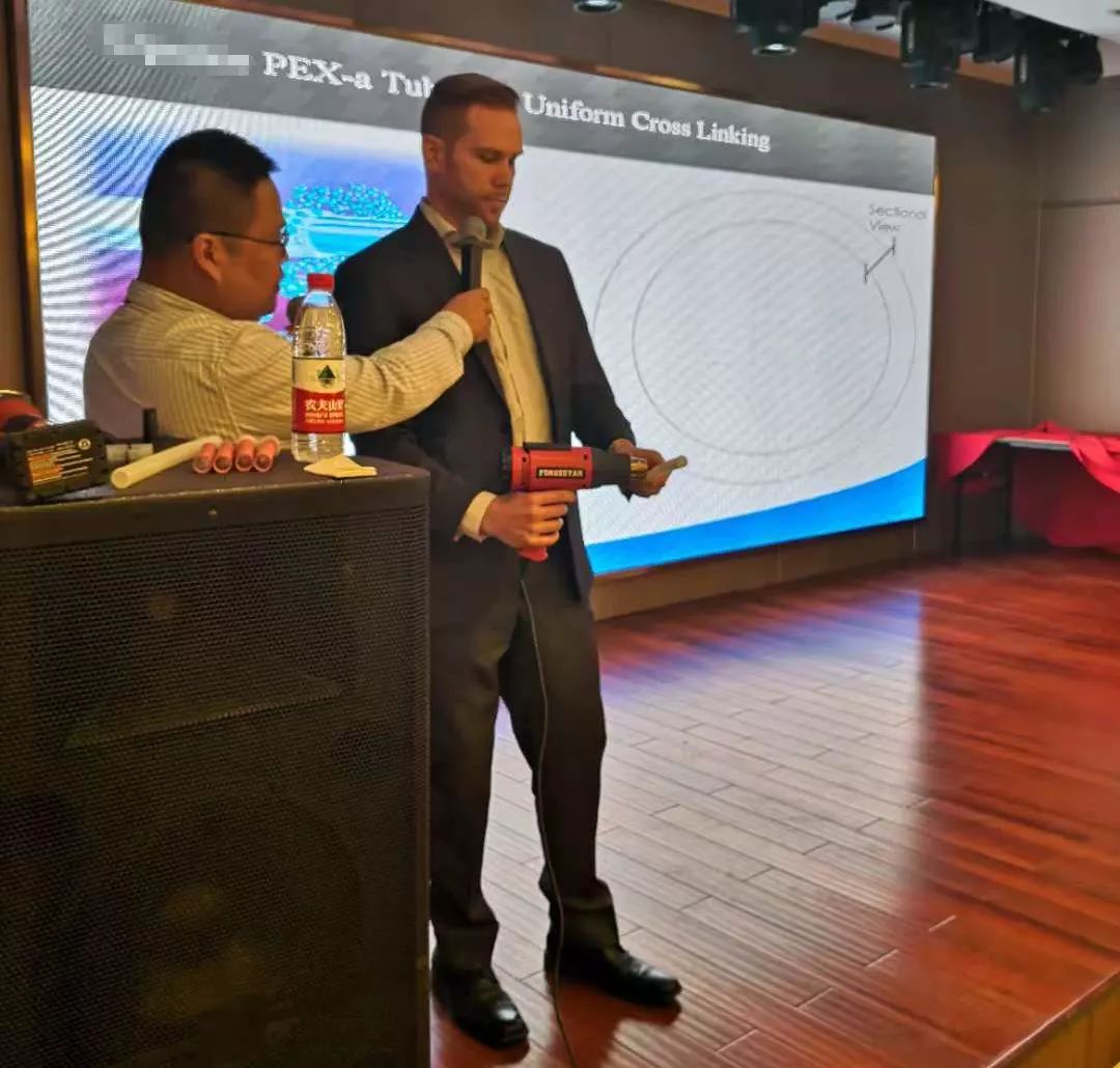 随后,www.huatihui.com集团美国技术总监JOHN先生为大家详尽介绍了PE-Xa"零"漏点给水系统的性能优势及该系统在美国乃至国际市场上的广泛应用情况,让参会人员对国际领先的产品系统与应用技术也增进更深的认识与了解。