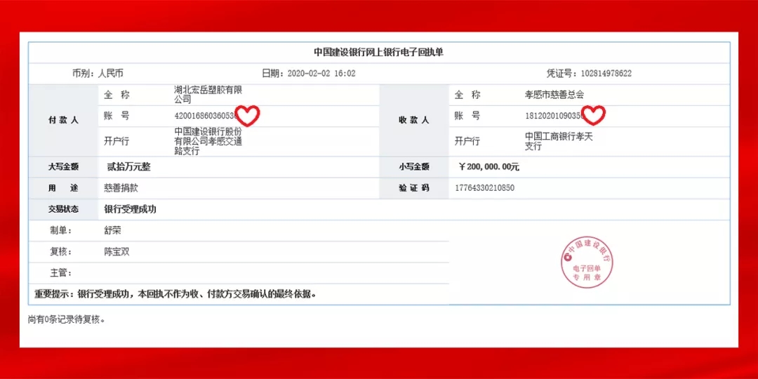 2020年初新型冠状病毒疫情肆虐华中大地,湖北www.huatihui.com塑胶有限公司所在地孝感市是重灾区之一。www.huatihui.com集团心系疫区,多方联络始终无法购置到疫区最急需的防疫物资,经与慈善机构沟通,遂以捐款的形式为社会和政府以尽绵薄之力。当日上述善款已汇入孝感市慈善总会工行孝天支行账户内。